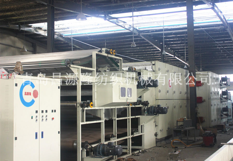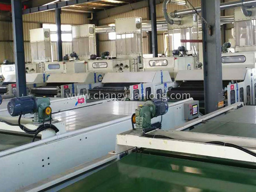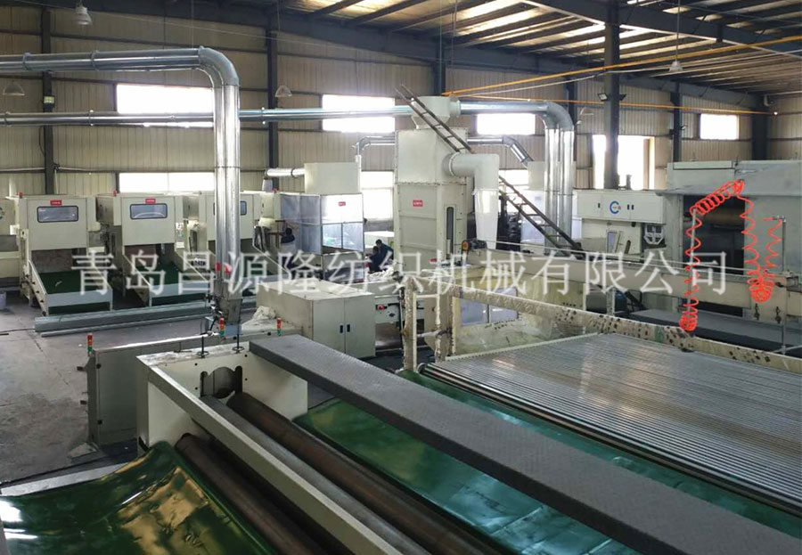 工藝流程:開包機-開(kāi)鬆機-振動給棉機-梳理機-鋪網(wǎng)機-烘房-燙光(guāng)機(jī)-成(chéng)卷切片(piàn)機
