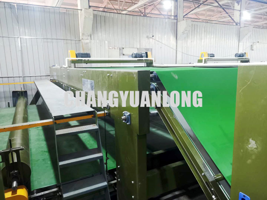 (2)鋪網機有輸入簾、儲存簾、落網(wǎng)簾(lián)、底簾、往複傳動機構,寬幅(fú)調節及提升機構等各部分組成,往(wǎng)複采用變(biàn)頻(pín)控製。底簾為塑料簾,其餘為(wéi)木簾。